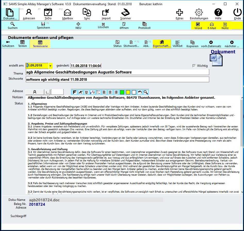 - Erst durch die Kombination von Dokumenten und Kontakten / Adressen erhalten Sie eine leistungsfähige Dokumentenverwaltung.
